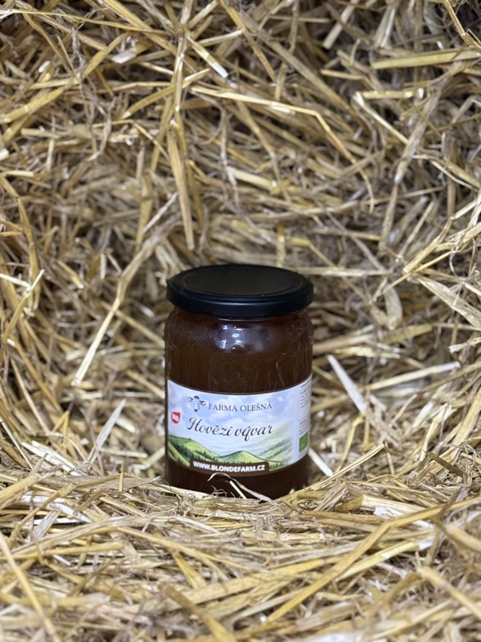 16 hodin tažený vývar z předem upečených kostí, masa a zeleniny. Zavařeno ve sklenici. Bez přidané soli. Vhodné i pro miminka.