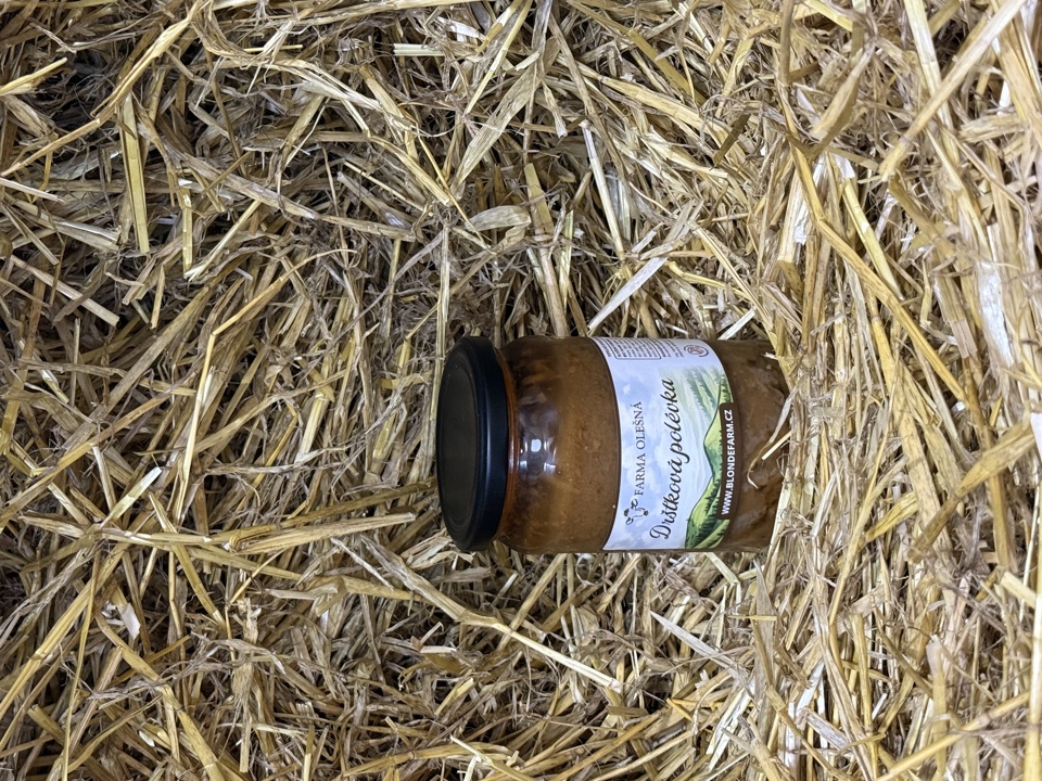 BIO hovězí vývar (BIO hovězí kosti, BIO hovězí maso, BIO cibule, BIO celer, BIO petržel, BIO mrkev, BIO pórek, BIO česnek, BIO nové koření, BIO pepř celý, BIO bobkový list) , BIO dršťky, cibule, hladká mouka, sádlo, česnek, řepkový olej, koření (sůl, BIO sladká paprika, BIO kmín, BIO majoránka, BIO pepř)